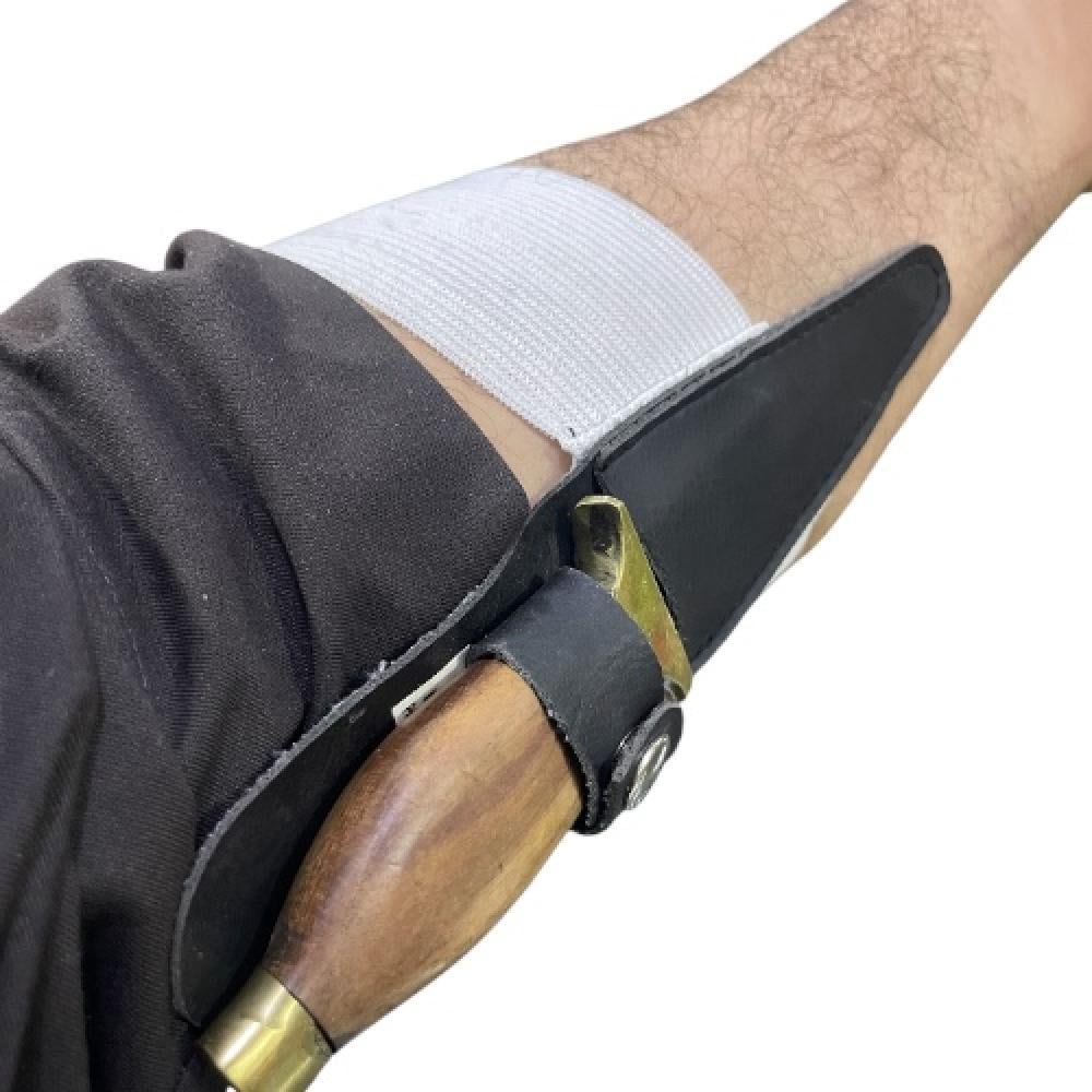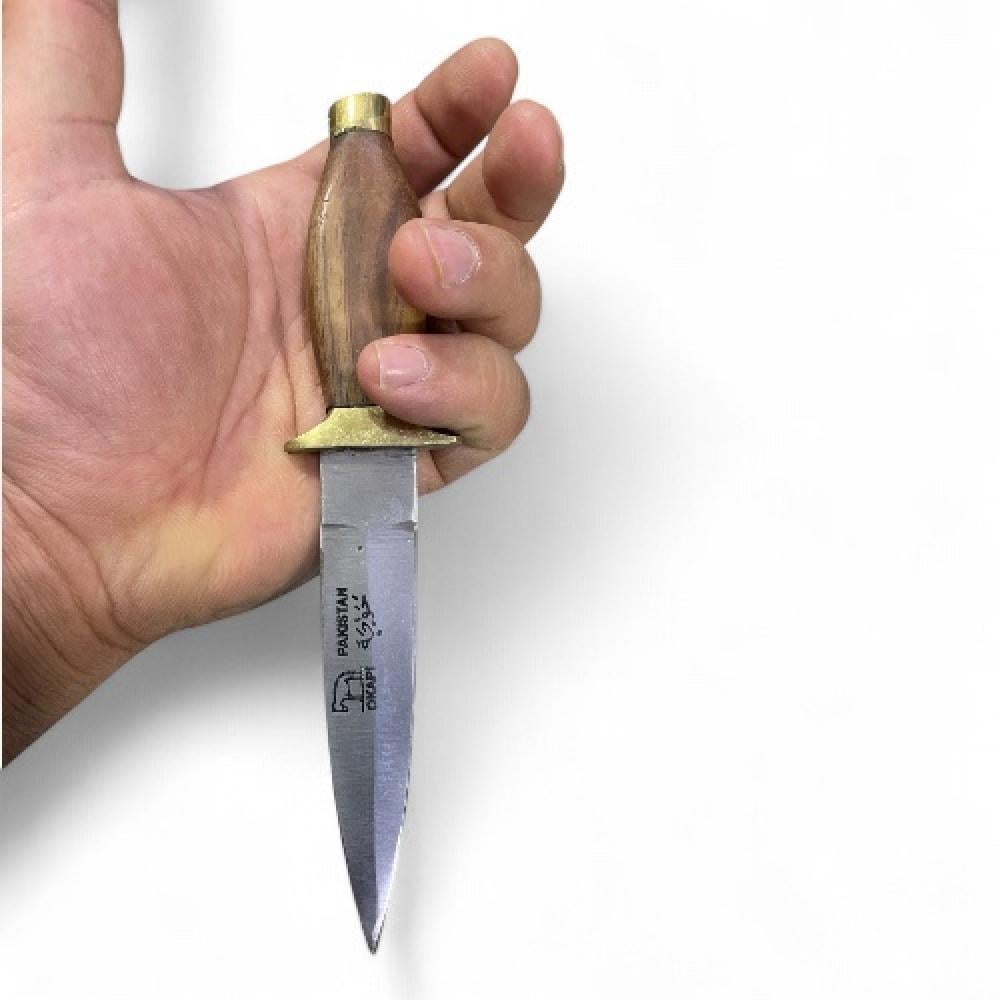 خوجة حدين قابل للسن بمشد للتثبيت على الذراع صناعة باكستانية عالية الجودة بمقبض خشبي مذهب من الأطراف بنصل كروم ستيل
